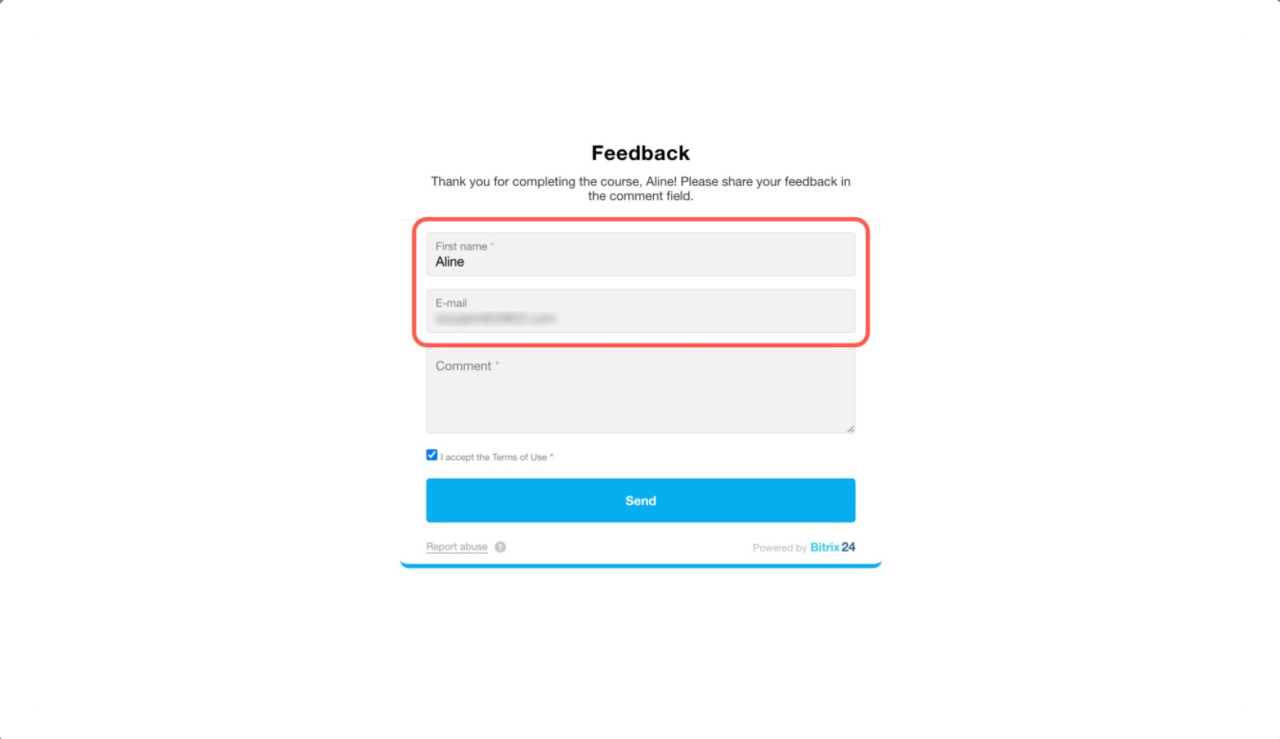 - Dans Bitrix24, vous pouvez créer des formulaires CRM personnalisés dont certains champs sont remplis automatiquement avec les données du client enregistrées dans le CRM.