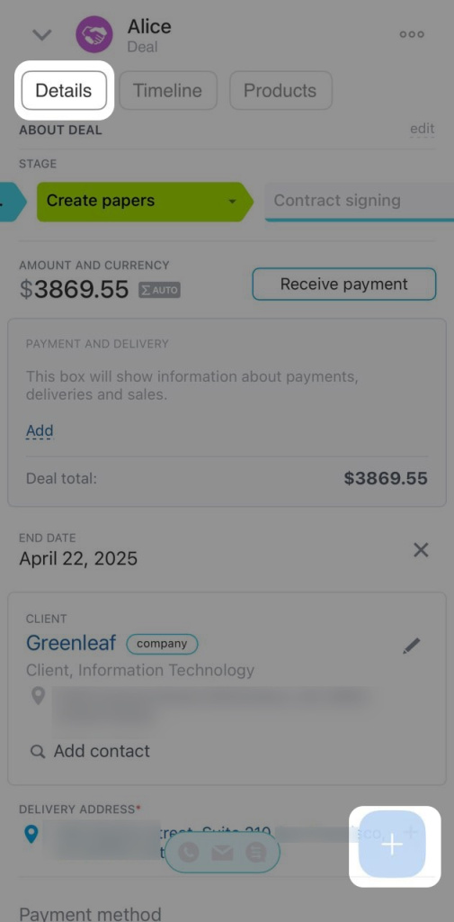 - Appuyez sur Plus (+) en bas à droite de la fiche.