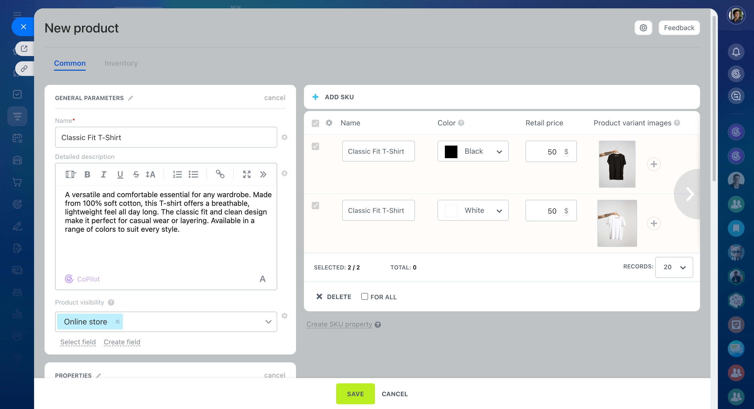 Dans Bitrix24, le catalogue de produits est commun au CRM et aux boutiques en ligne. Vous pouvez le créer manuellement ou importer un fichier existant si votre assortiment est important.