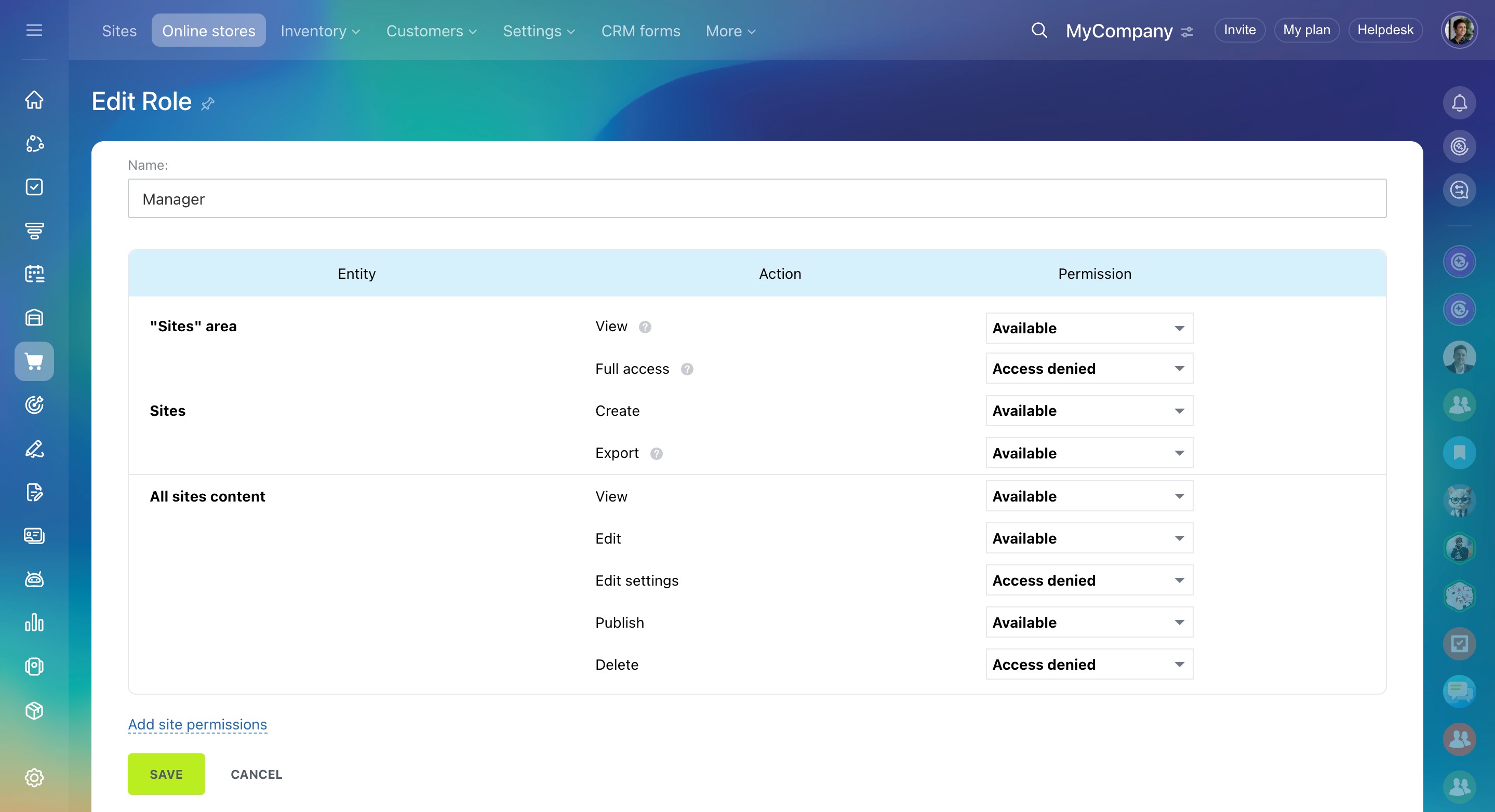 - Configurez les droits d’accès à la boutique en ligne en attribuant des rôles existants ou en créant les vôtres. Cela permet d’éviter les erreurs et de répartir clairement les responsabilités au sein de l’équipe.