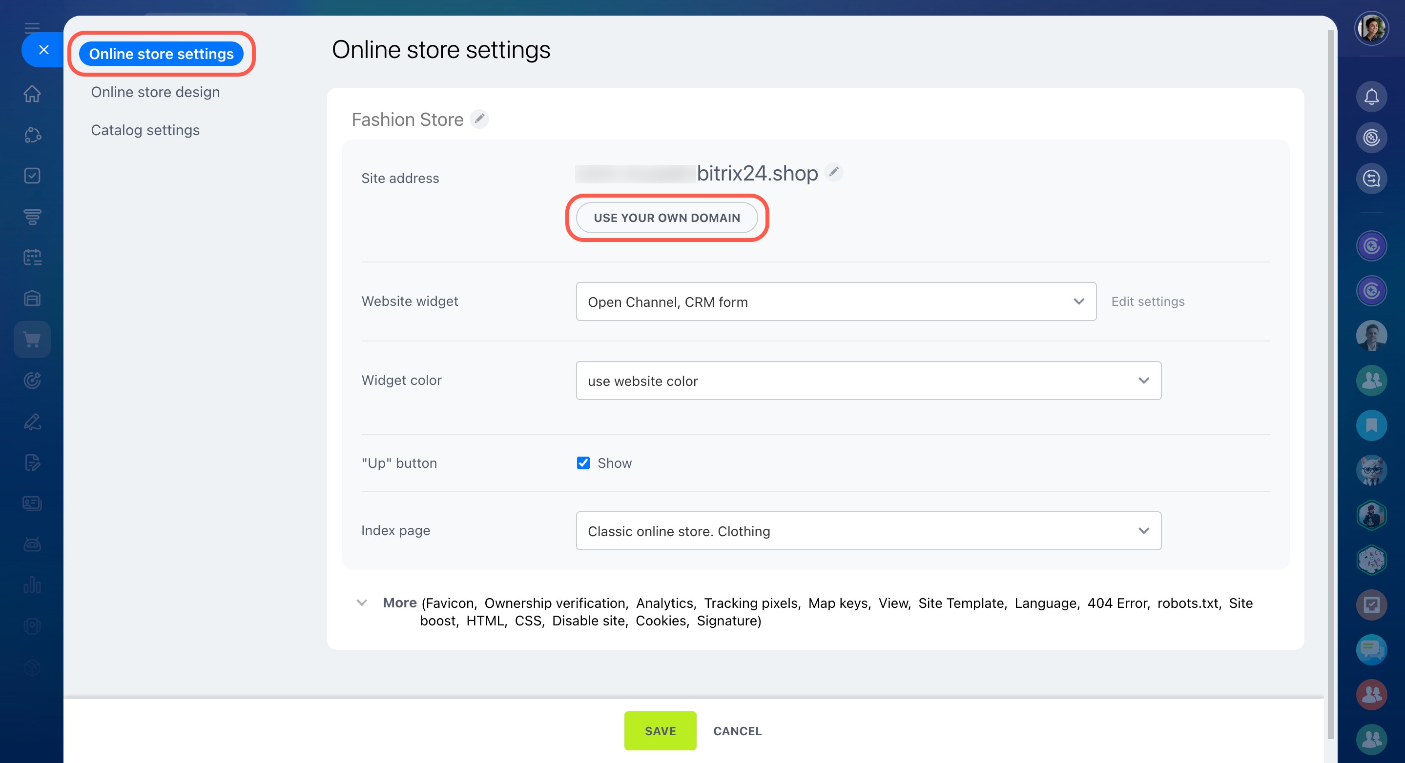 - Si nécessaire, connectez votre propre domaine et ajoutez la boutique aux moteurs de recherche afin d’attirer plus de clients.