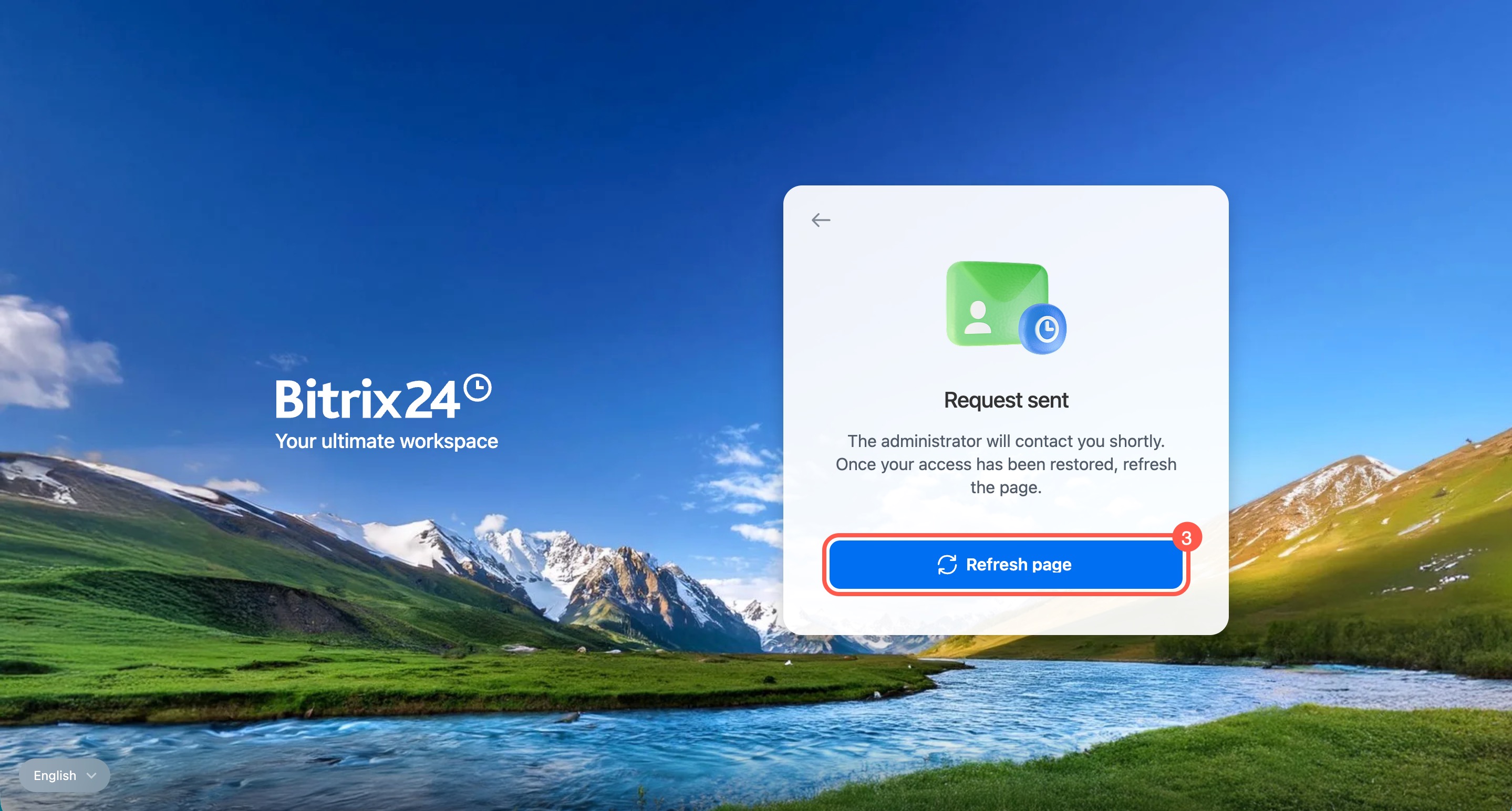 - Attendez que l’administrateur désactive temporairement la protection, puis actualisez la page de connexion. Vous serez automatiquement connecté à Bitrix24.