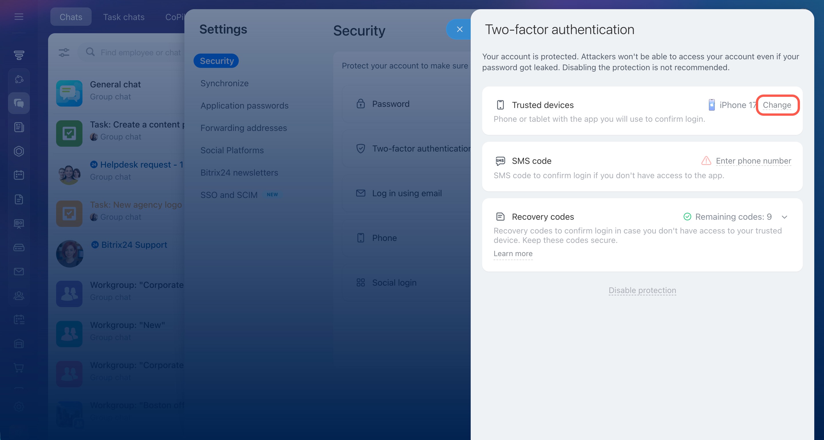 Nouvelle authentification à deux facteurs dans Bitrix24