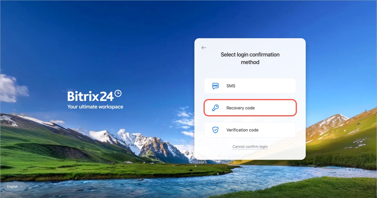 Si vous avez activé la nouvelle authentification à deux facteurs, vous devez confirmer la connexion à Bitrix24 via l’application mobile. En cas de perte de votre téléphone, de changement d’appareil ou si vous ne pouvez pas ouvrir l’application, vous pouvez récupérer l’accès par d’autres moyens.