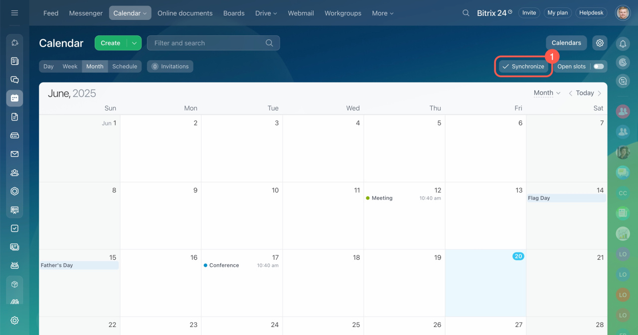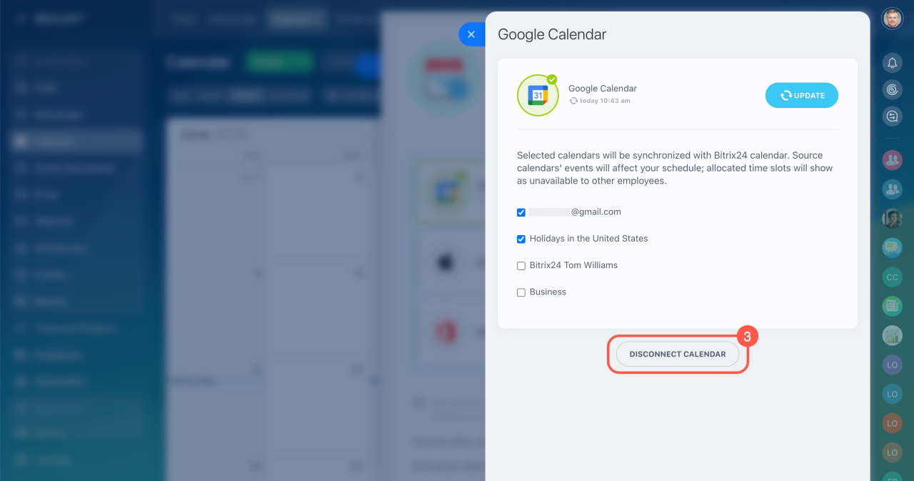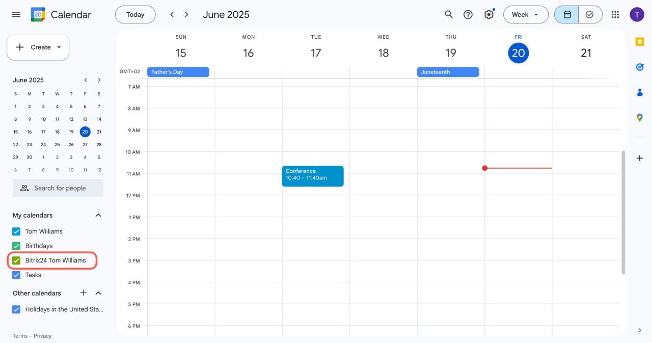 Tout est prêt ! Votre calendrier Bitrix24 est synchronisé avec le calendrier Google :