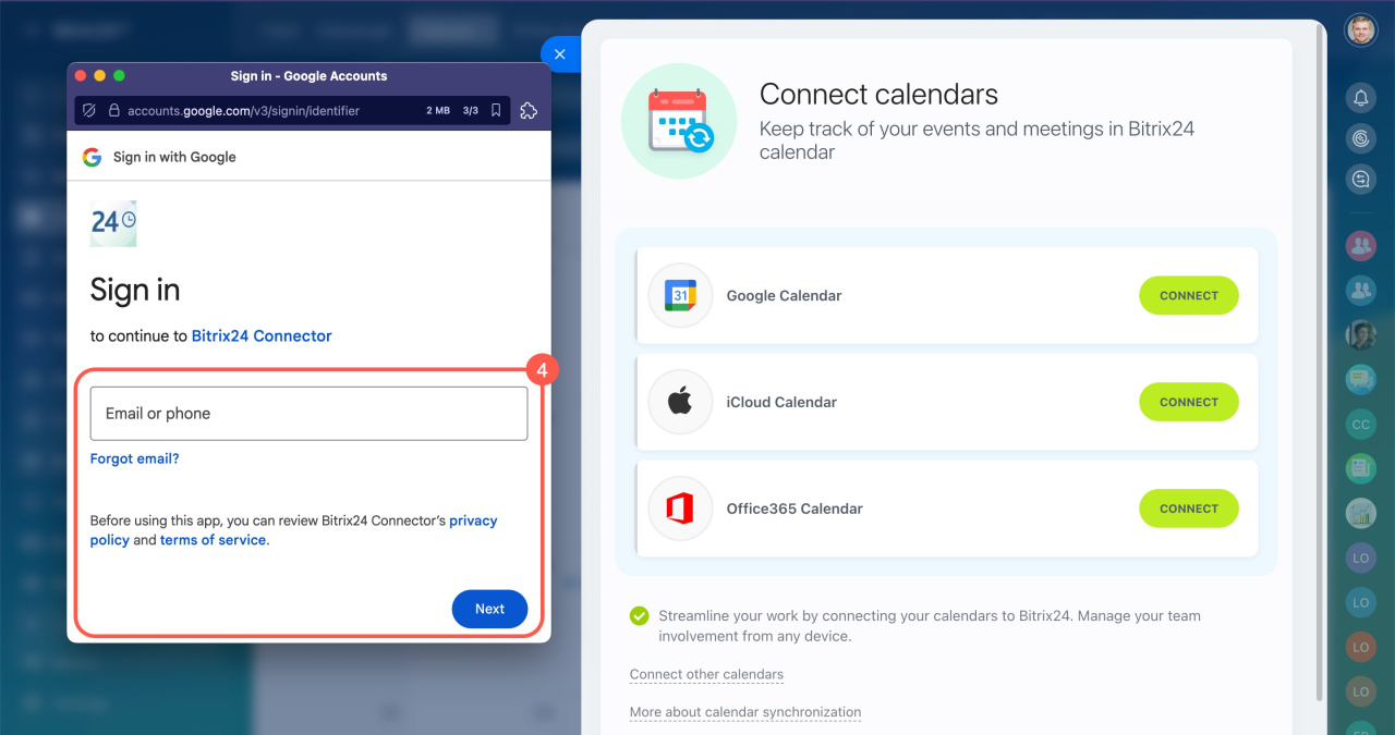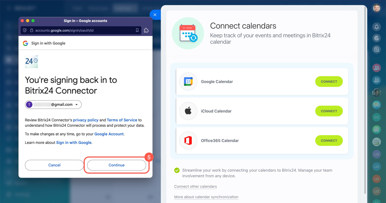 Autorisez Bitrix24 Connector à accéder à votre calendrier Google :