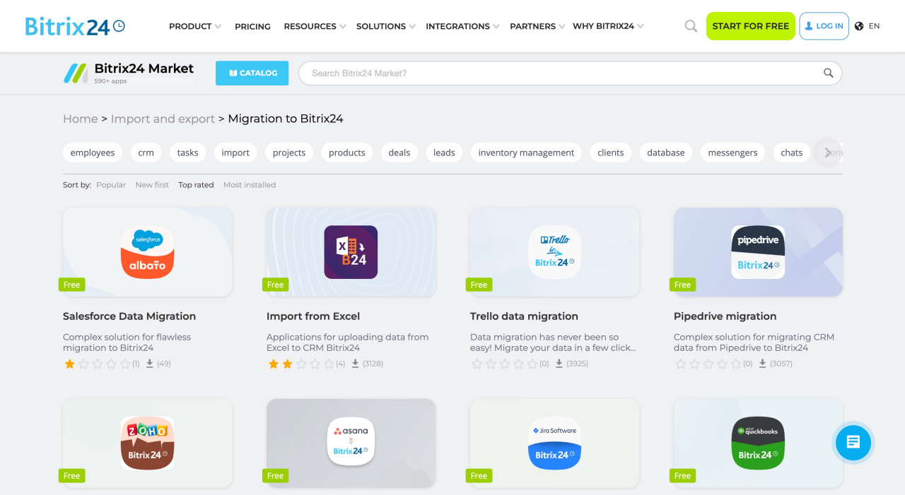 Ces possibilités élargissent d'autant plus les applications de notre Market. Les applications de migration de données permettent de transférer rapidement et sans perte votre base de données vers CRM Bitrix24.